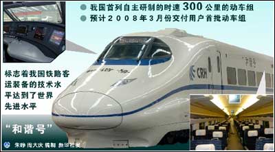 Xinhuanet.com รายงานว่า เมื่อเร็วๆ นี้ จีนผลิตรถไฟ EMU ความเร็วสูงสุด 300 กิโลเมตรรุ่น "เหอเซียะเห้า" (Hexiehao,ความสมานฉันท์,CRH2-300) สำเร็จที่เมืองชิงเต่า