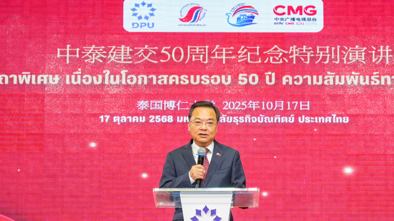 เอกอัครราชทูตจีน ปาฐกถา ความสัมพันธ์ไทย–จีน กับธรรมาภิบาลโลก ในงานของสมาคมผู้สื่อข่าวไทย-จีน สถาบันสื่อและบริหารธุรกิจไทย-จีน มหาวิทยาลัยธุรกิจบัณฑิตย์ (DPU) และ China Media Group (CMG)