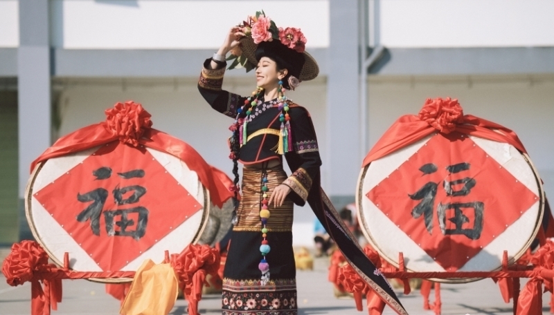 ฉลองเทศกาลตรุษจีนและปีใหม่ชนเผ่าจ้างครั้งแรกในบ้านหลังใหม่ ที่อำเภอติ้งรื่อ เขตซีจ้าง